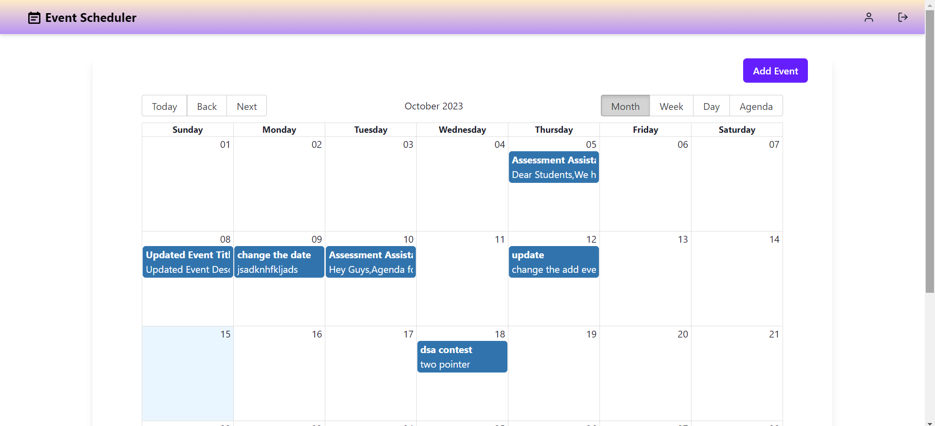 Event Scheduler Mini App is a web application built using React, Redux, Node.JS, Express.js, MongoDB and Chakra UI, designed to help users manage their events efficiently. This app provides features like event addition, editing, deletion, and visualization on a user-friendly UI with real time Google Calendar integration. It also offers authentication options via JWT and Google OAuth for secure access to the app.